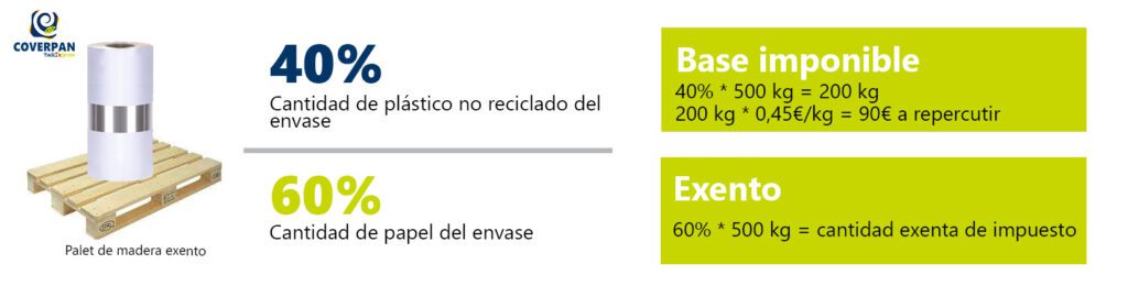 Os dejamos un ejemplo de este cálculo con una bobina que está compuesta de papel y de plástico no reciclado: